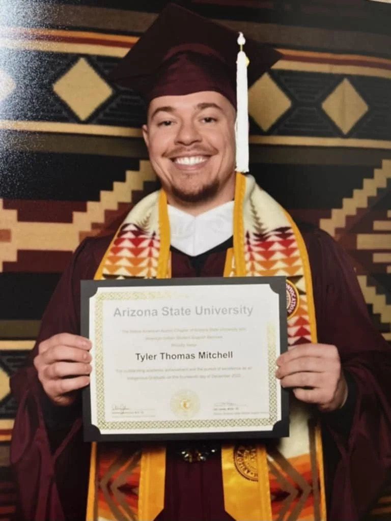 Tyler Mitchell (Yurok/Hupa) was born and raised in Hoopa, California and is a proud Yurok Tribal Member. Graduating from College of the Redwoods in 2012, Tyler went on to complete his Bachelor’s degree in Recreation Administration with a Minor in Native American Studies and Business Administration from Humboldt State University in 2014. He also received his Master of Arts Degree in Indigenous Education from Arizona State University in 2022.